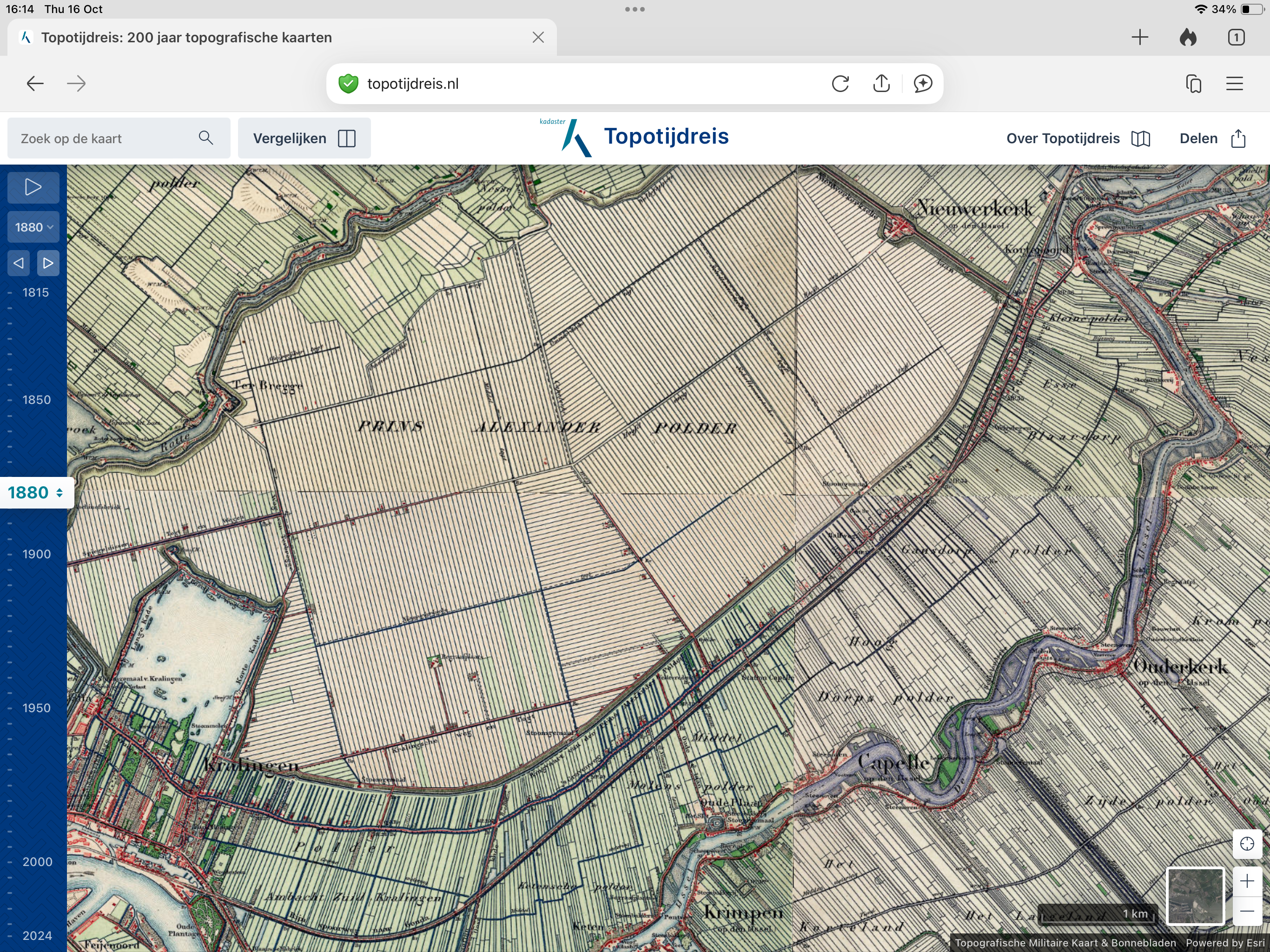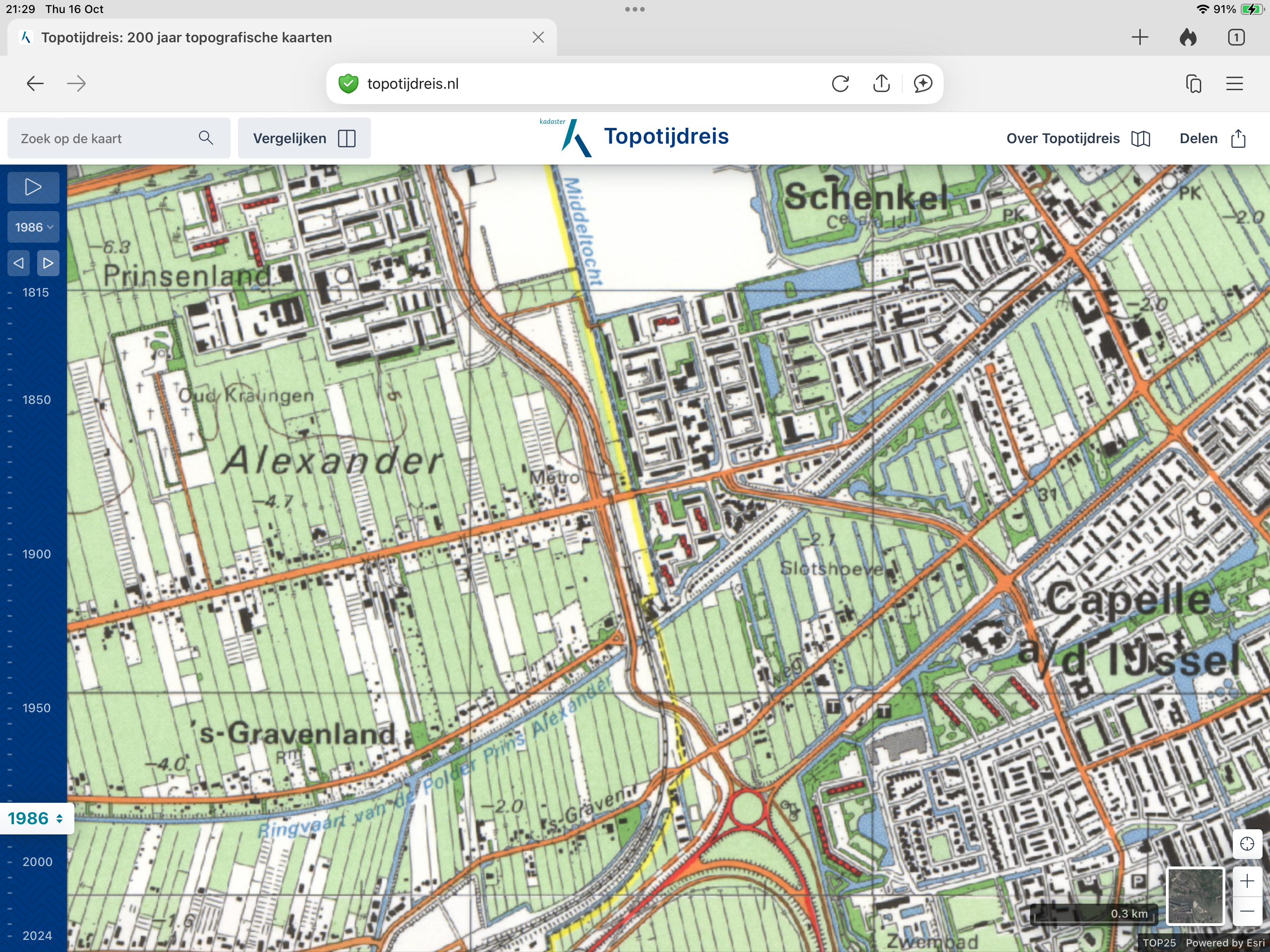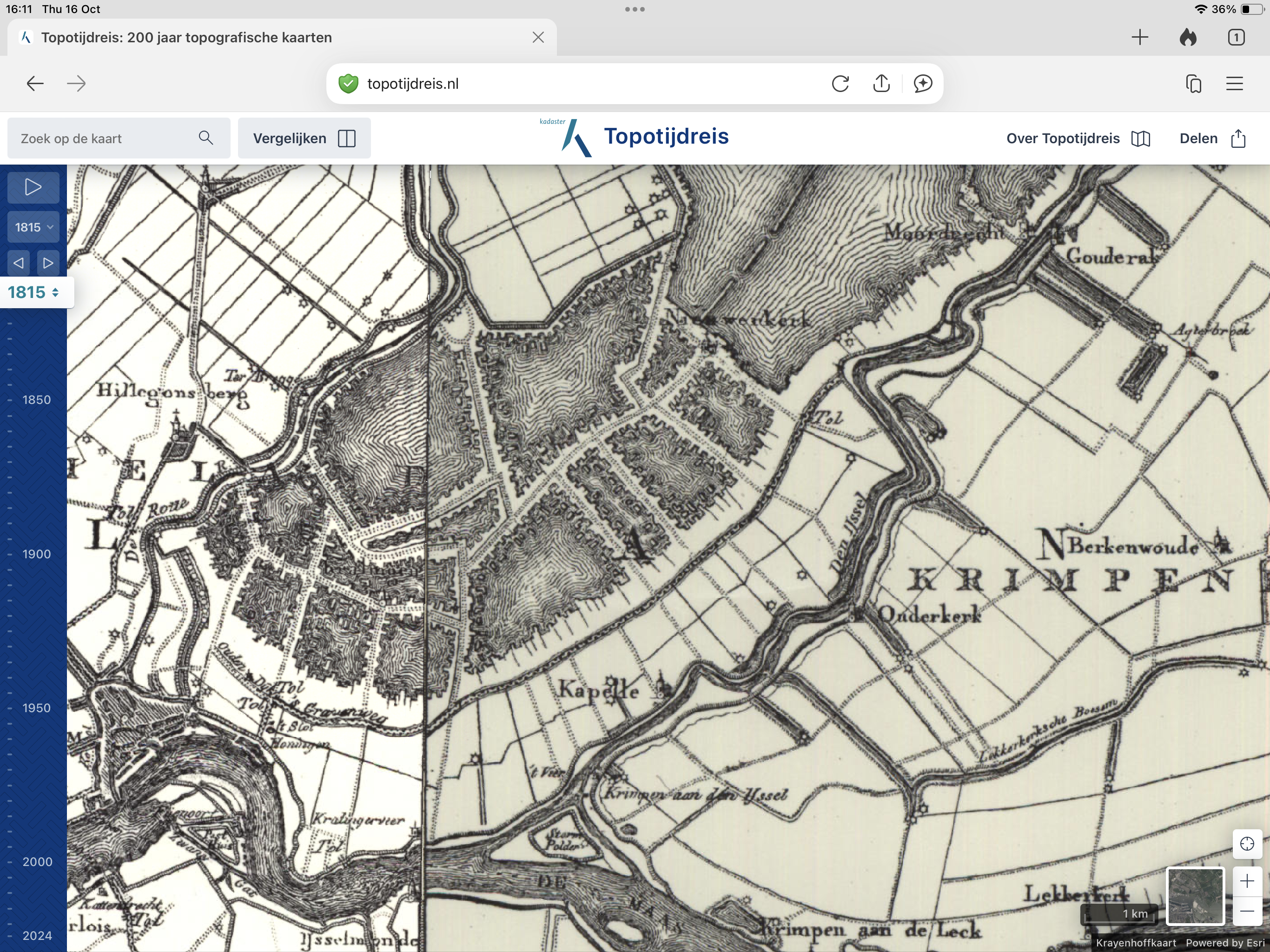 In 1815 bestaat de Prins Alexanderpolder nog niet. De Hollandse IJssel en de 's-Gravenweg zijn wel op de kaart te zien