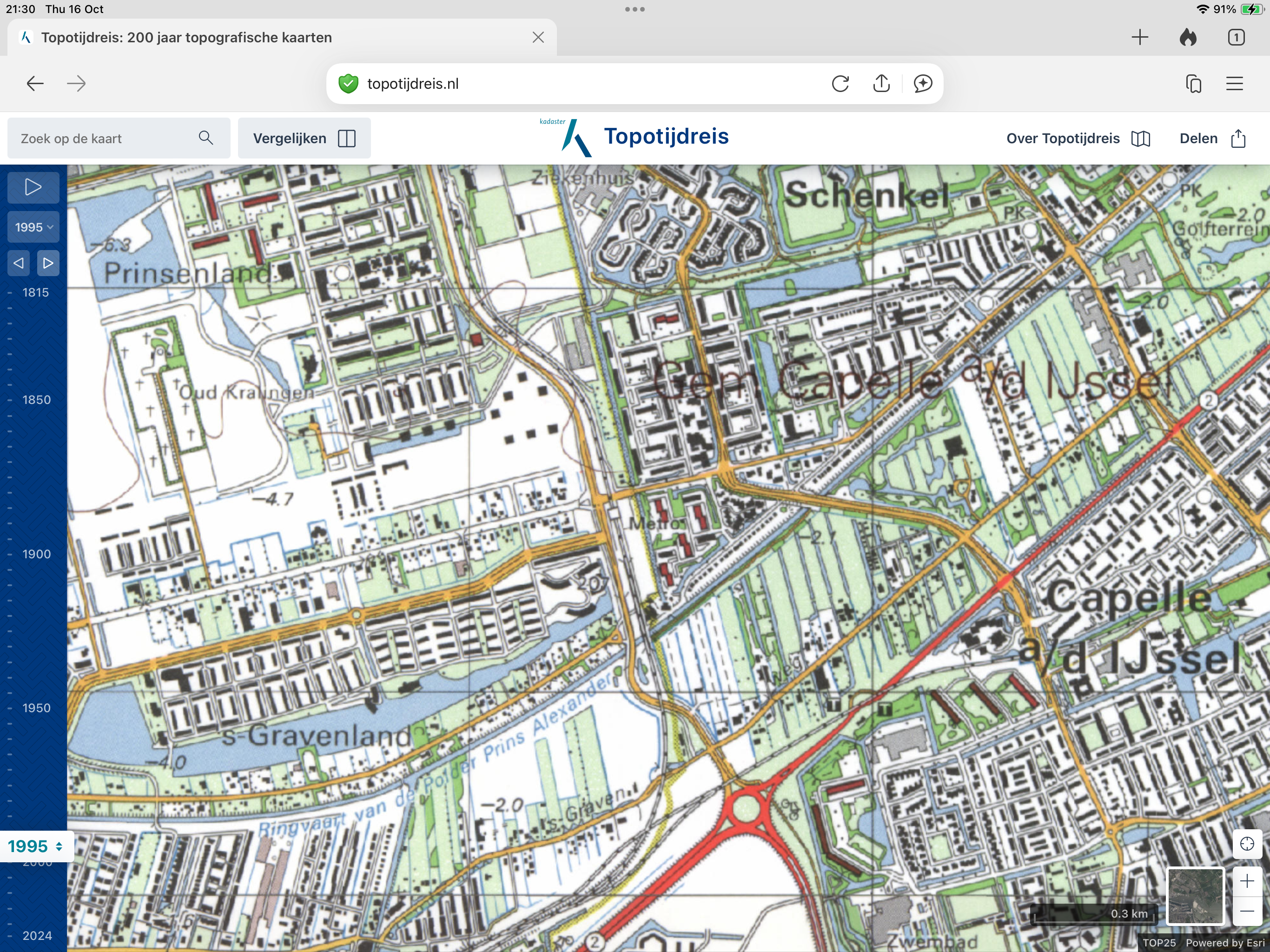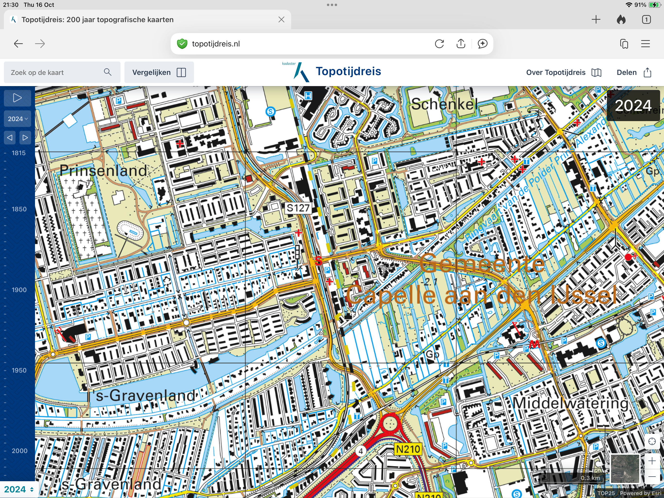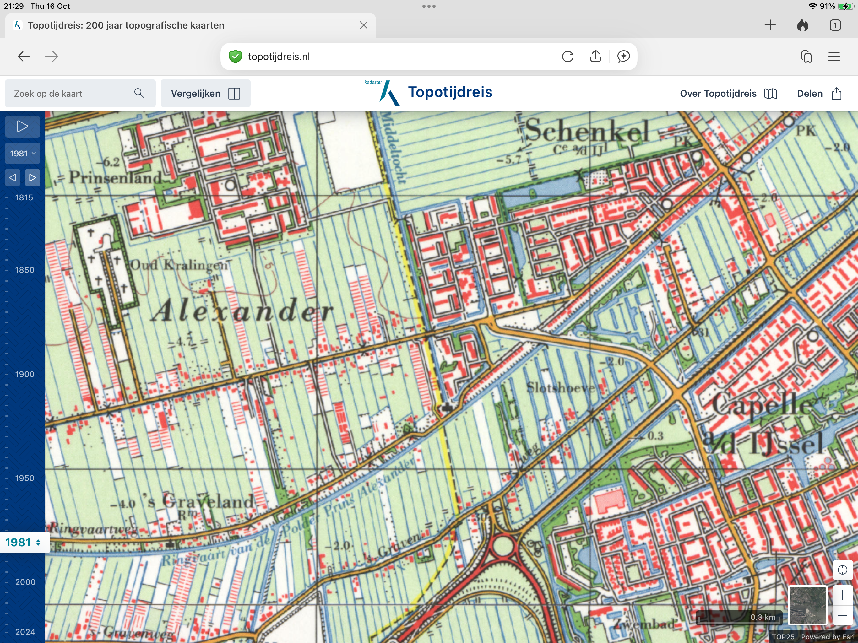 In 1815 bestaat de Prins Alexanderpolder nog niet. De Hollandse IJssel en de 's-Gravenweg zijn wel op de kaart te zien