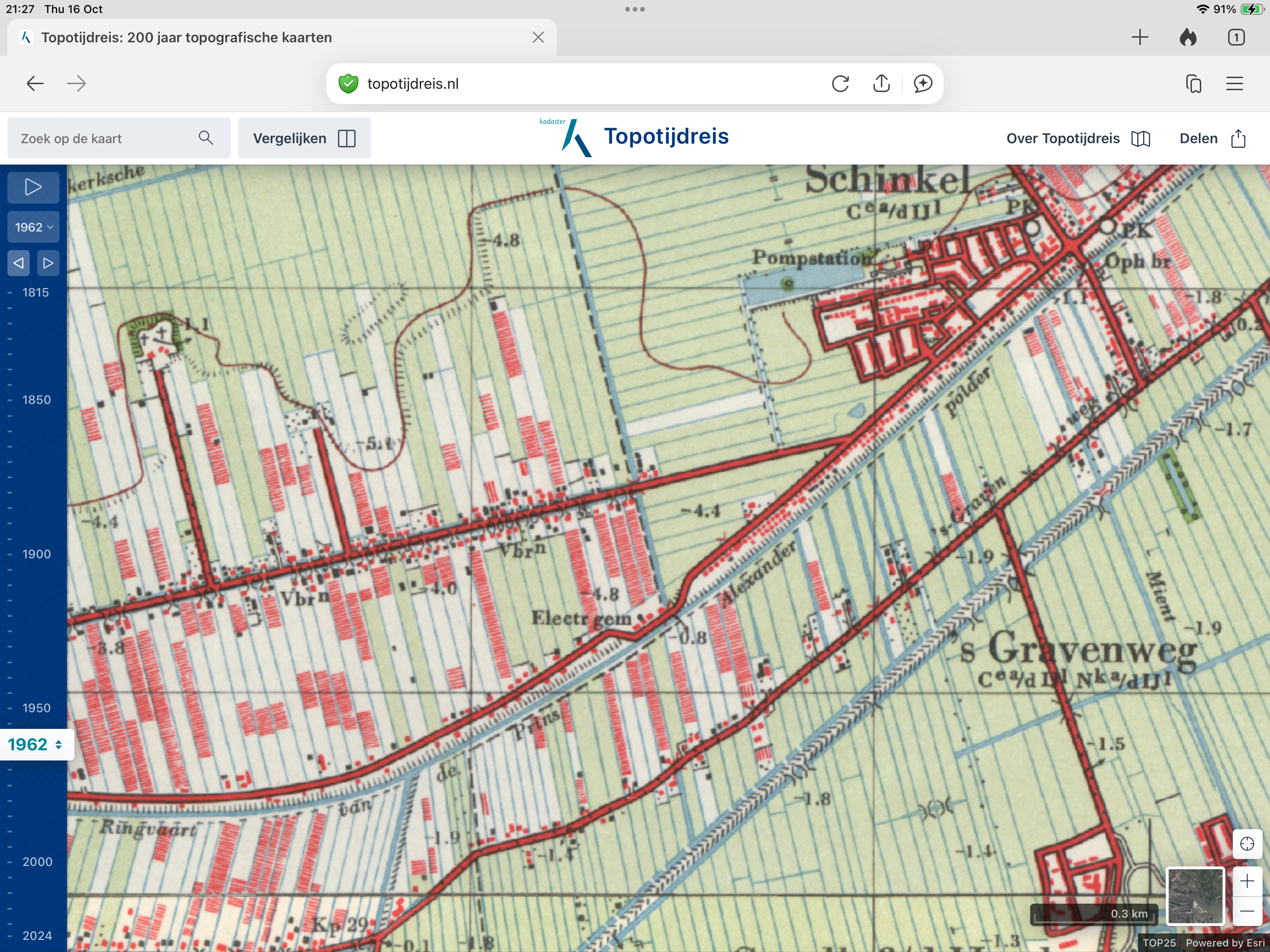 Op de kaart van 1962 is te zien dat de spoorlijn Rotterdam - Gouda buiten gebruik is gesteld. Het gehucht Schinkel groeit.